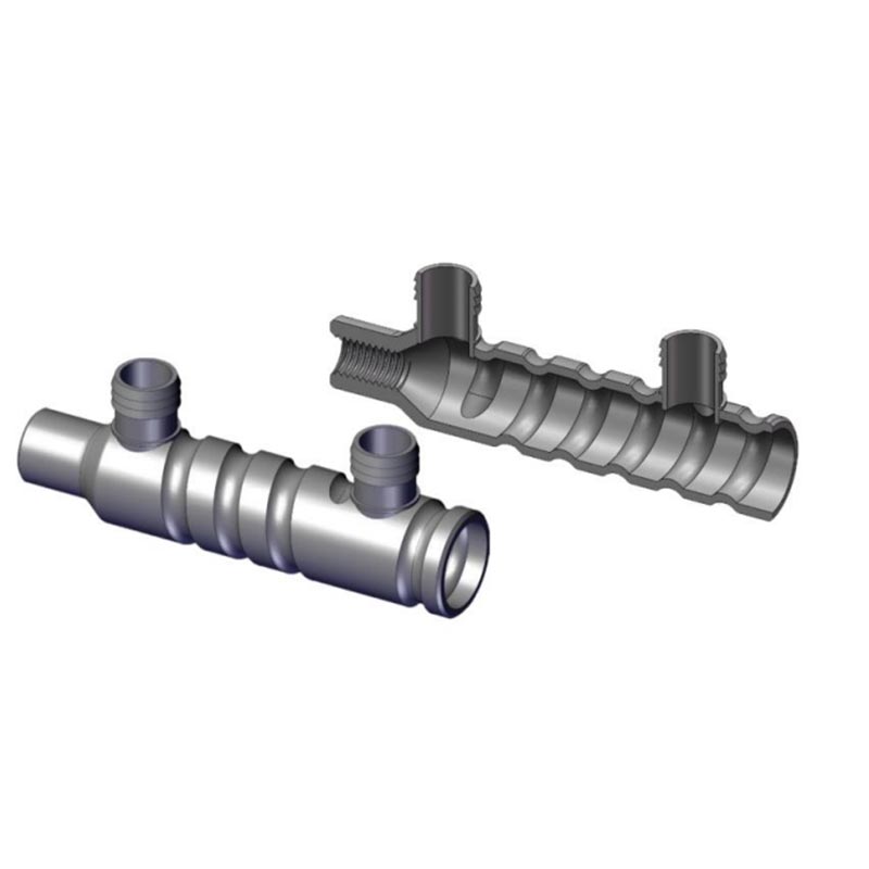 di kedua ujungnya, cocok untuk sambungan butt rebar dua arah; selongsong semi-grout memiliki sambungan berulir menjadi satu