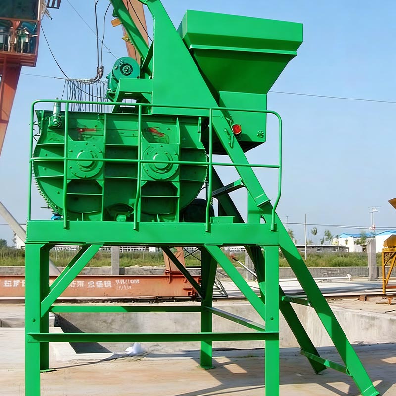aplikasi beton, termasuk model umum seperti JS500, JS1000, JS2000, dll, menggunakan dua pencampuran yang disusun secara horizontal
